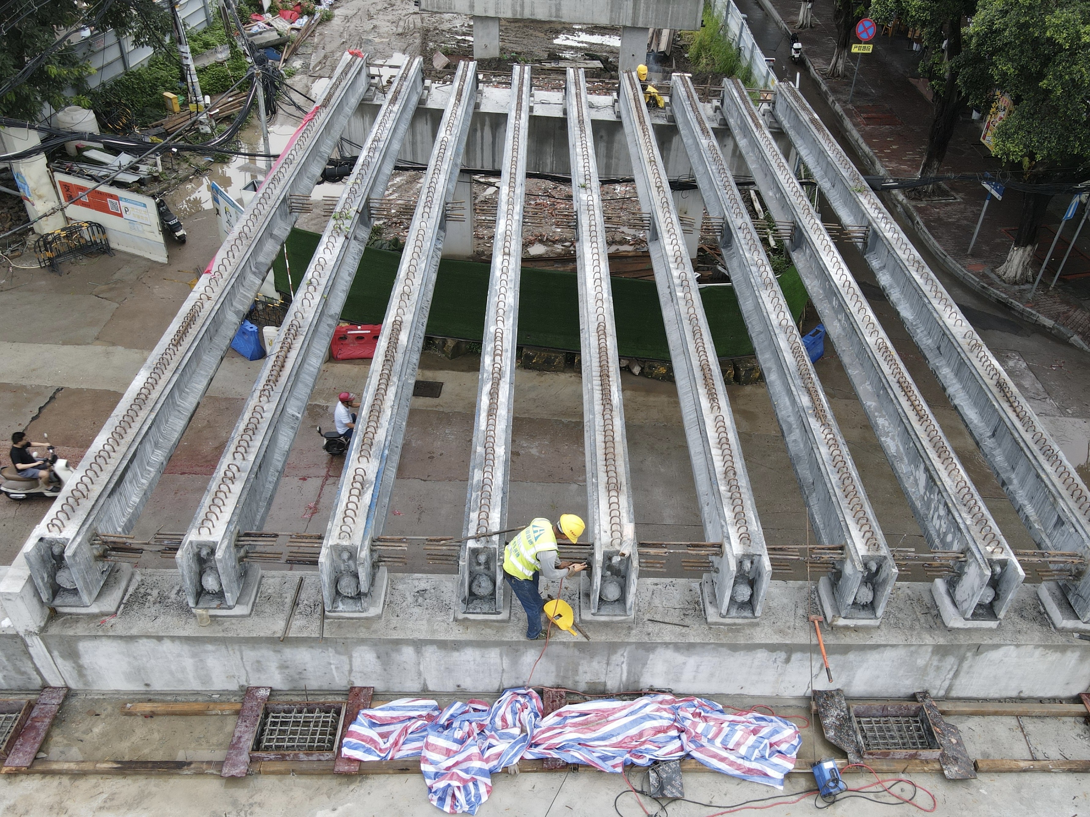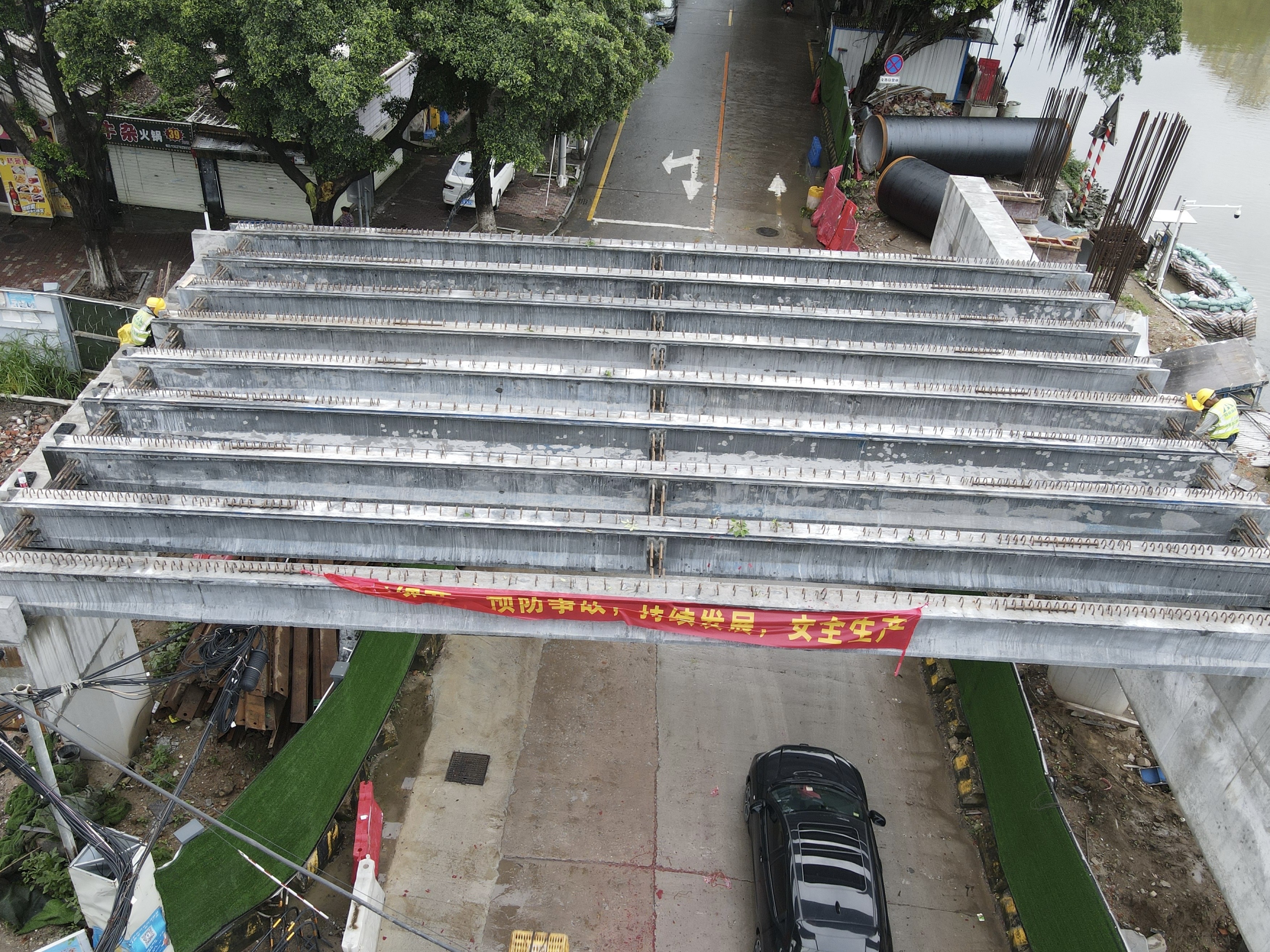 市桥大桥自2023年7月旧桥拆除以来,项目建设团队已奋战近两年,面对错综复杂的地下管线、狭小的施工空间、频繁的交叉作业以及巨大的交通保畅压力,项目部迎难而上,逐一攻克难题。